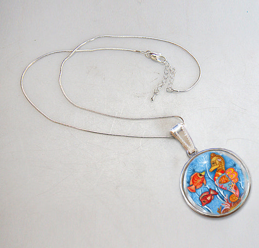 Seahorse Silver Plated Mother of Pearl Jewelry Pendant Necklace Coastal - 44045