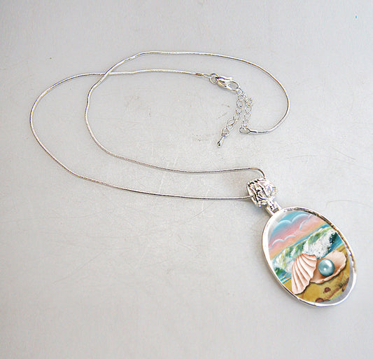 Sea Shell Pearl Silver-Plated Mother of Pearl Jewelry Pendant Necklace - 44054