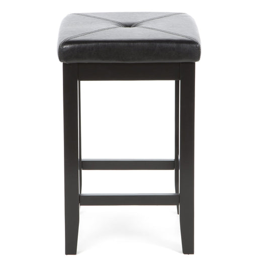Set of 2 - Black 24-inch Backless Barstools with Faux Leather Seat