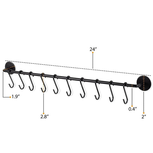 Set of 2 - Black Metal Wall Mounted Pot Rack with 20 Hanging Hooks