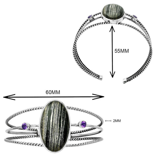 Silver Leaf Obsidian Cuff Bangle Bracelet B-1011 SDB4355