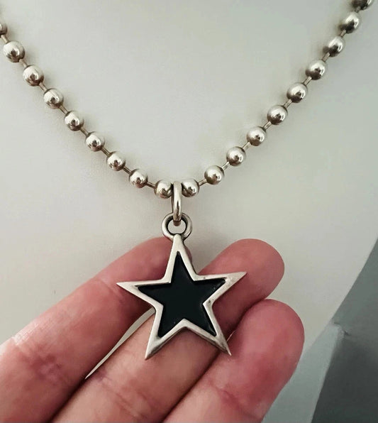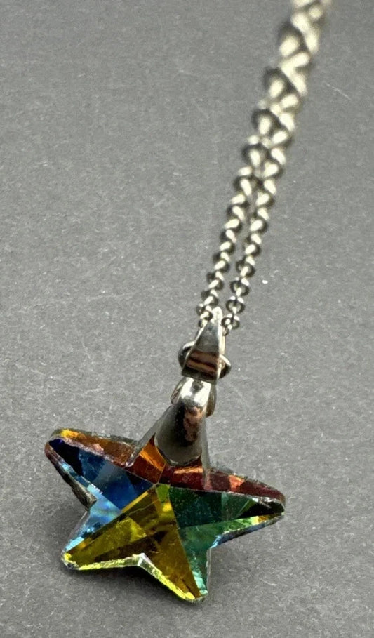Silver Tone Star Pendant 18” Necklace Stunning Statement Piece!