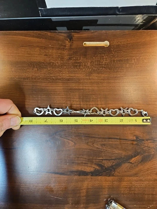 Silver Tone Heart And Stars 8" Chain Bracelet