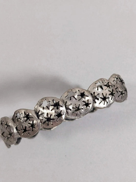Silver Tone Cut Out Star Flower Round Disc Hinge Bangle Bracelet 7.5 inches