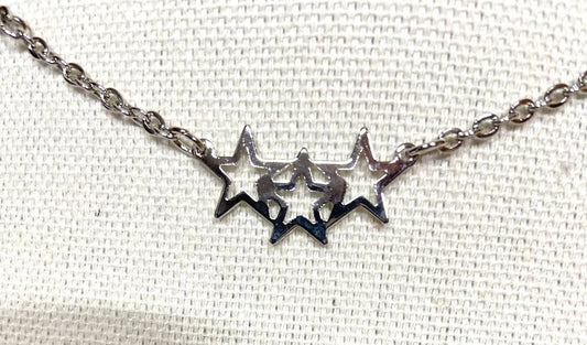 Silver Tone Triple Star Station Chain Necklace -18” long, 3 sets of stars