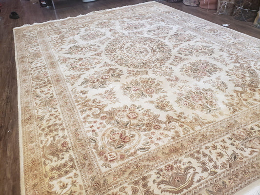 Sino Persian Rug 8x11, Ivory Floral Carpet, Vintage Wool Rug, Elegant Dining Room Rug, Hand Knotted Oriental Rug