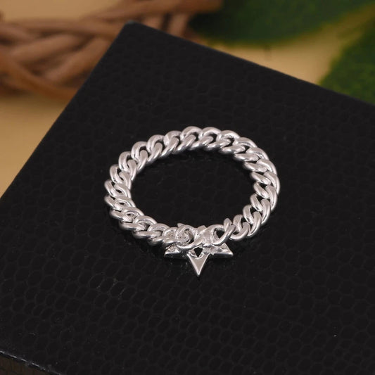 Solid Chain Ring, Oval Link Chain, Silver Chain Band, Star Ring, Cuban Link Ring