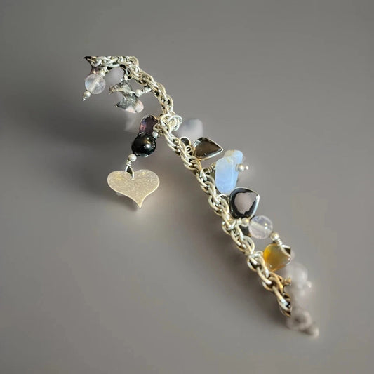 Sterling 8” Charm bracelet Hearts Sea stars Agate quartz 20grams