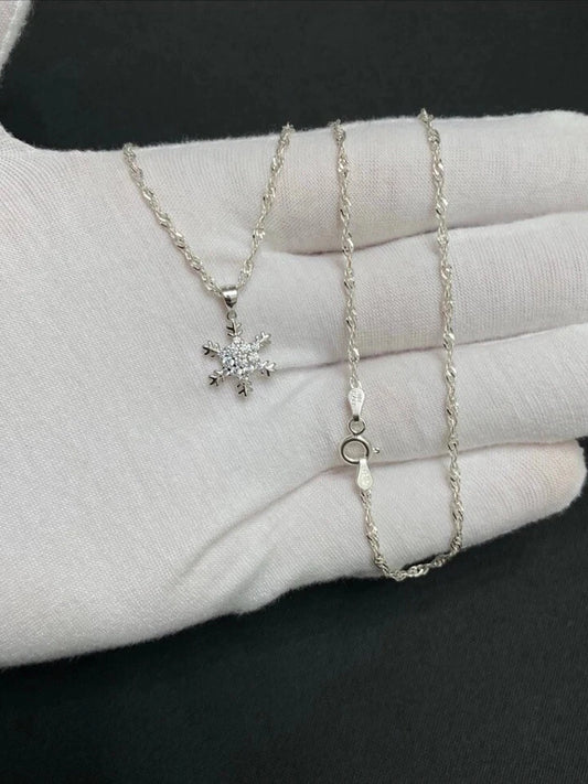 Sterling Silver CZ Snowflake Pendant With 20” Silver Singapore Chain