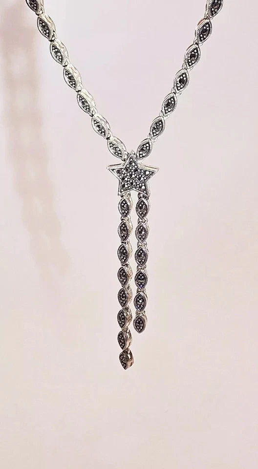 Sterling silver vintage 18" adjustable marcasite star necklace