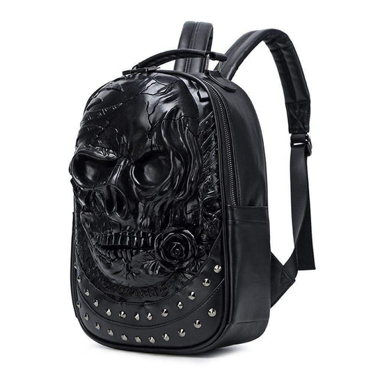 3D Backpack ,Studded Halloween 3D Skull With Rose Rucksacks Travel Bags