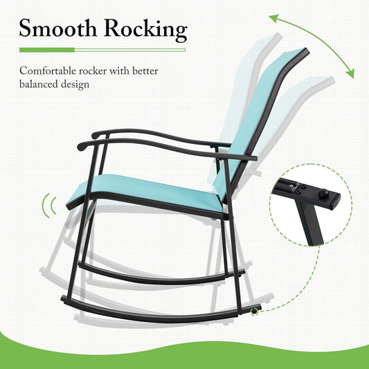 3 Piece Rocking Bistro Set, Outdoor Furniture with Rocker Chairs and Glass Coffee Table Set of 3, Balcony, Porch Furniture for Small Space, Blue