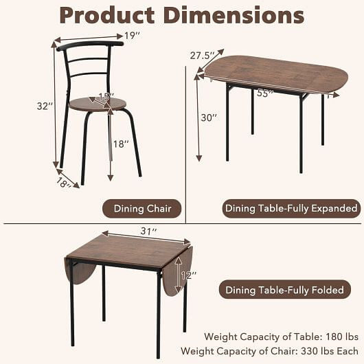 3 Pieces Dining Set with 2 Chairs and Modern Kitchen Table for Small Space-Brown