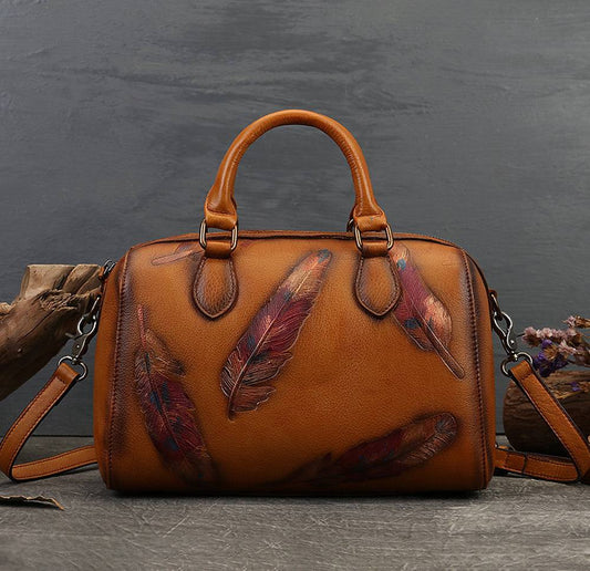Womens Vintage Leather Tote Handbag Small Top-Handle Bags