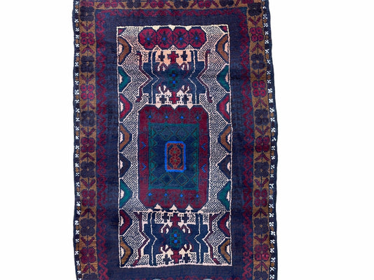 3 X 4.3 Vintage Handmade Tribal Wool Rug Balouch Rug Afghan Rug Red Blue Nice