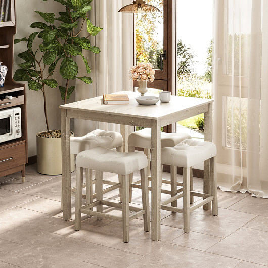 5 Pieces Bar Table Set with Square Table and 4 Padded Stools-Gray