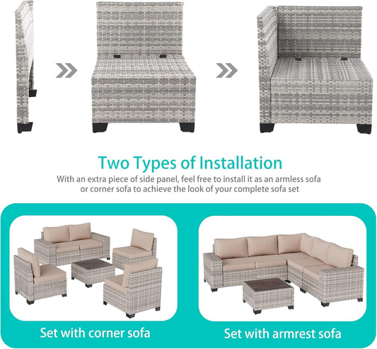 6-Piece Outdoor Patio Furniture Set Wicker Sectional Sofa Set, Patio Conversation Set with Thickened Cushions & Coffee Table for Garden, Backyard, Poolside, Grey