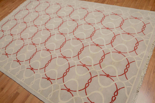 6' x 9' Geometric Pattern Hand Knotted 100% Wool Area Rug Beige 6x9