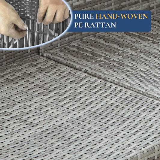 7 Pieces Patio Furniture Set, Outdoor Sectional Sofa Conversation Set, All Weather Wicker Rattan Dining Table & Chair with Ottoman, Grey Rattan&Grey Cushion