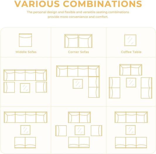 7-Piece Wicker Patio Furniture Set, Boho Outdoor Conversation Set Sectional Sofa with Water Resistant Thick Cushions and Coffee Table, Beige