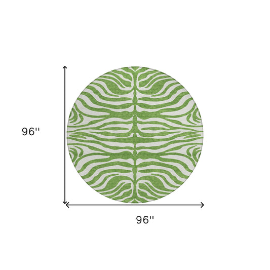 8' Green And Ivory Round Animal Print Washable Indoor Outdoor Area Rug