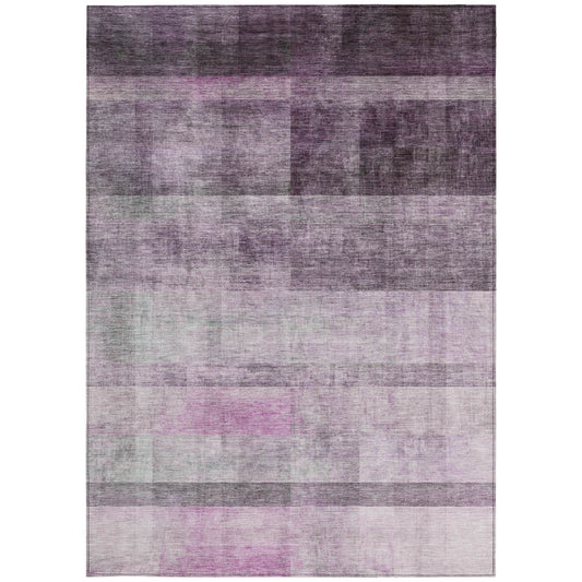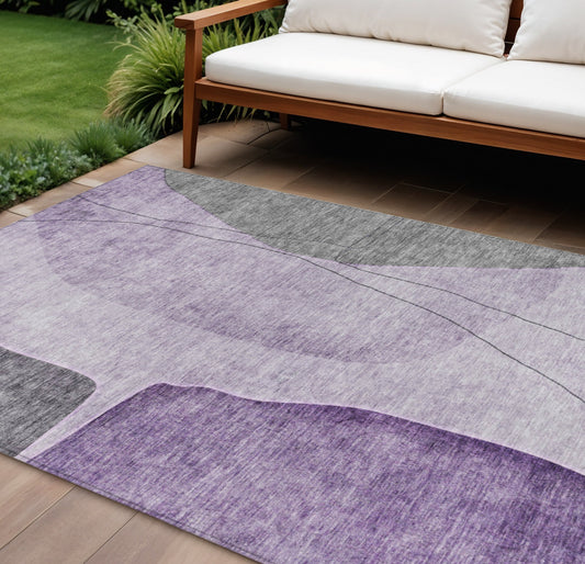 8' X 10' Purple Eggplant And Gray Abstract Washable Indoor Outdoor Area Rug