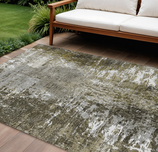8' X 10' Olive Green Brown And Ivory Plaid Washable Indoor Outdoor Area Rug