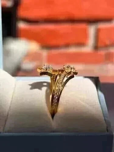 925 Sterling Silver Round Cut Simulated Diamond Star Ring 14k Yellow Gold Plated