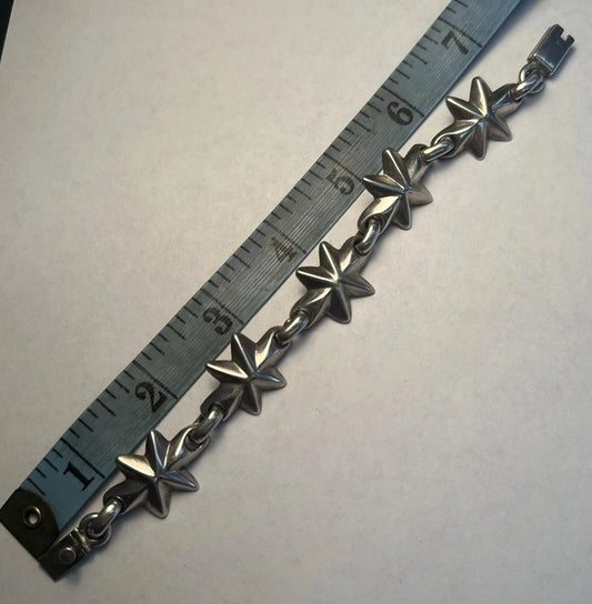 925 Sterling Silver Star Chain Bracelet 8” Mexico Made 47g