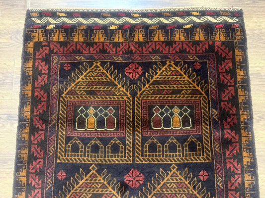 Afghan Rug 3x7, Navy Blue, Tribal Rug, Balouch Carpet, New