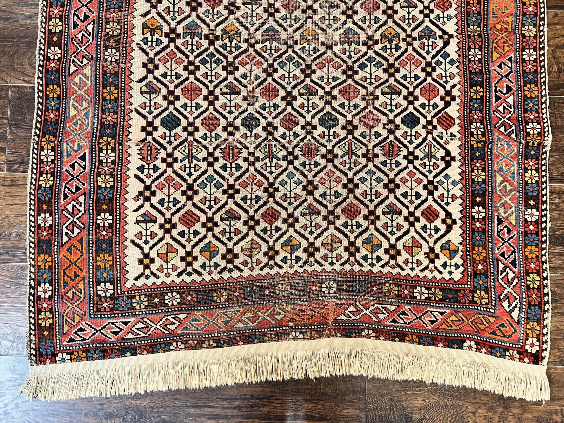 Antique Caucasian Rug 4x5, Hand Knotted...