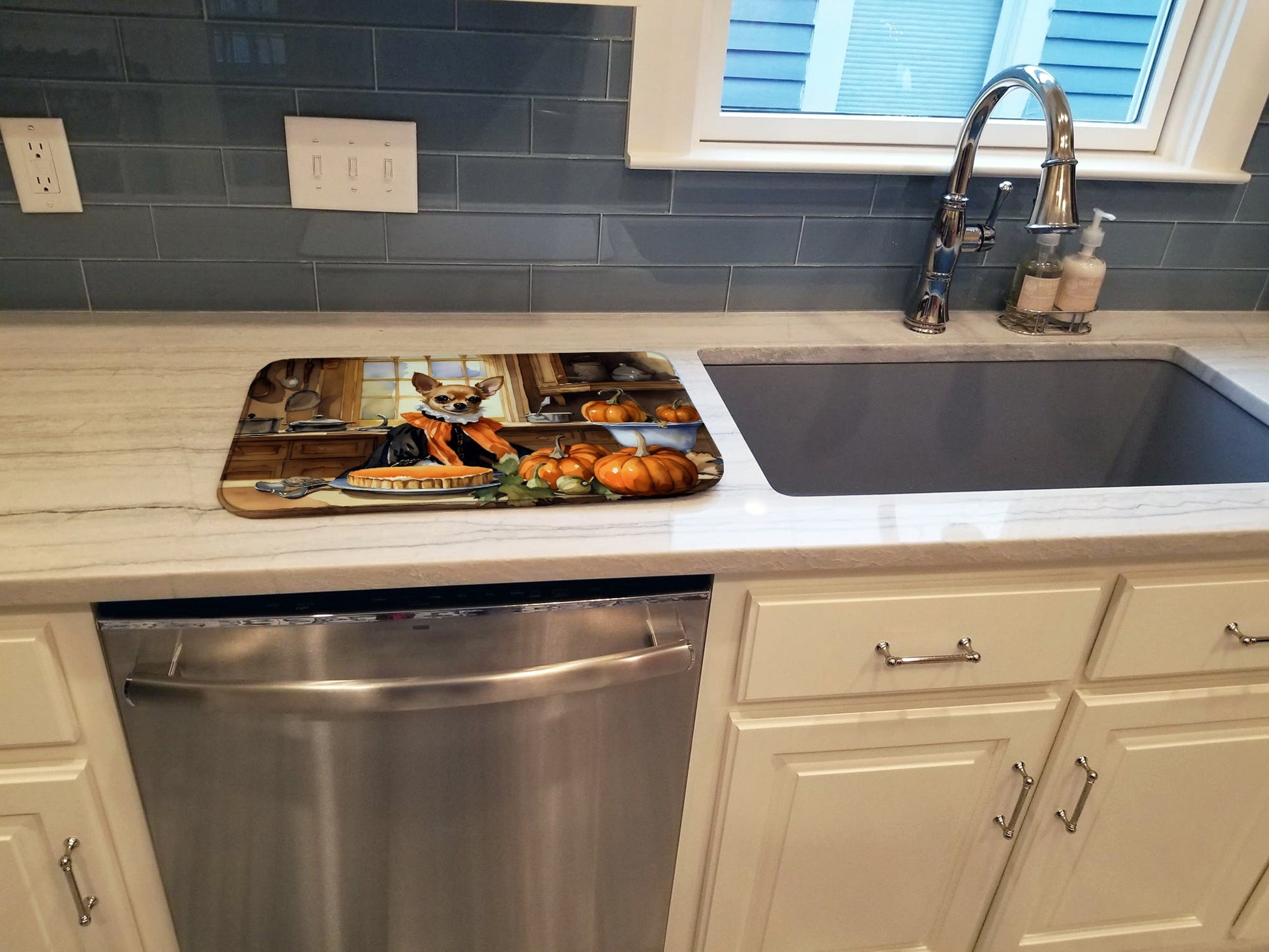 Chihuahua Fall Kitchen Pumpkins Dish Drying...