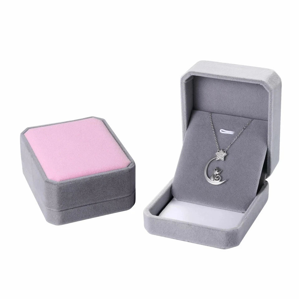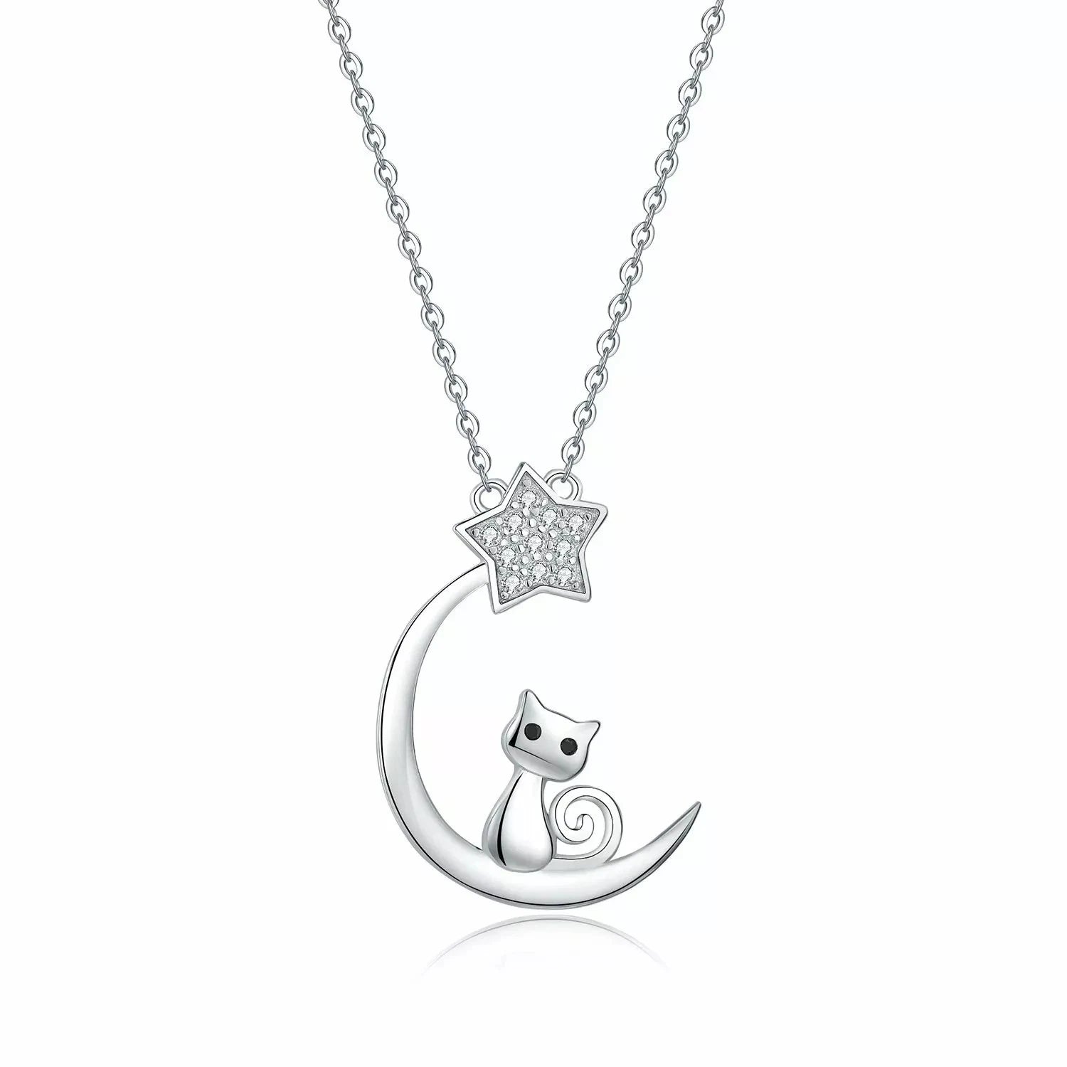 Crescent Moon Cat CZ Star Pendant...