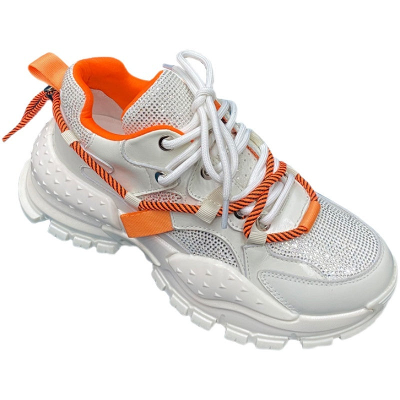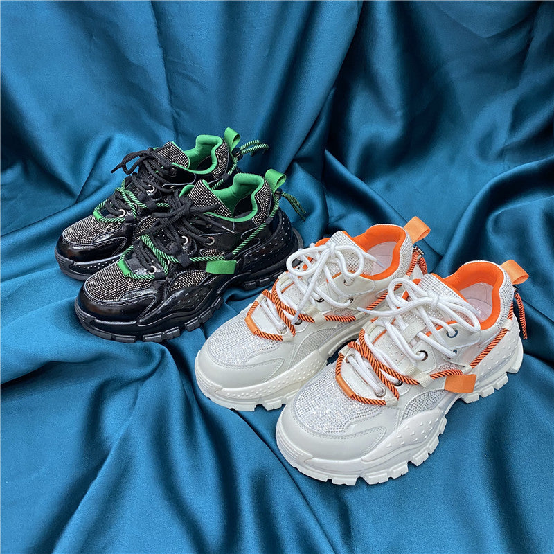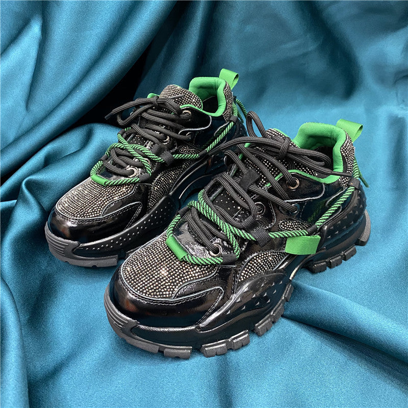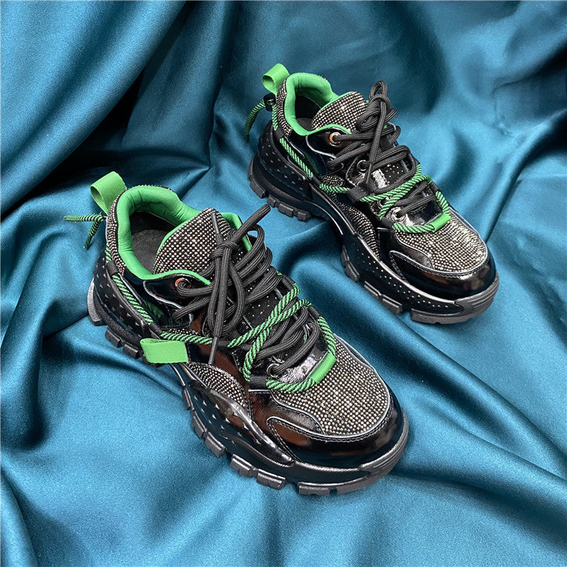 Daddy Shoes Leather Rhinestone Lace-up Platform...