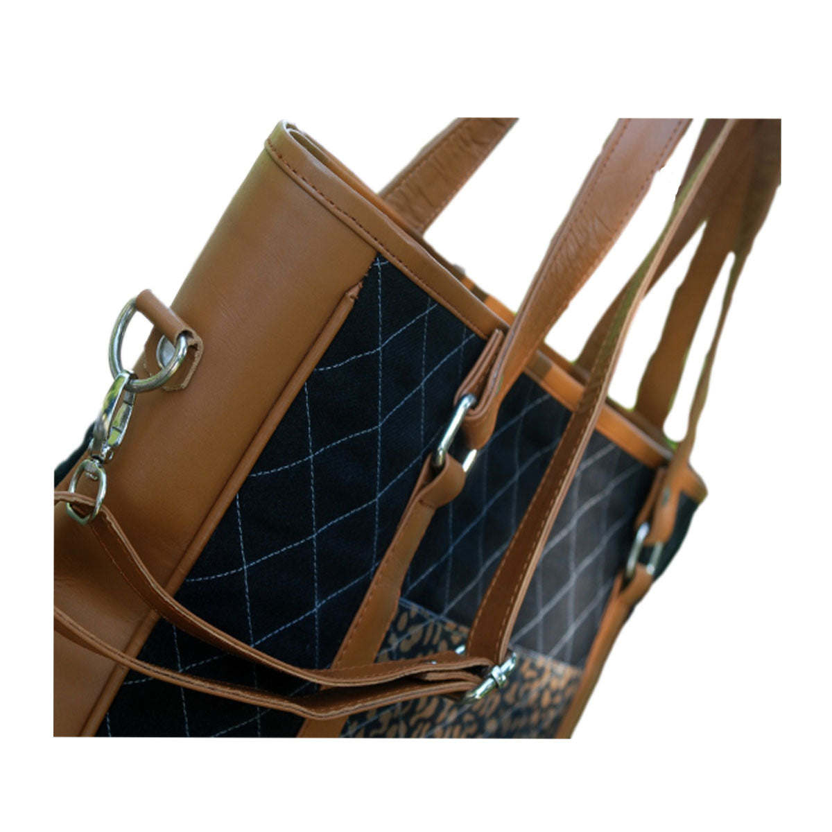 Denim Kilim Leather Black Bean Bag