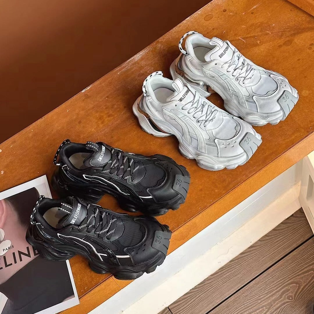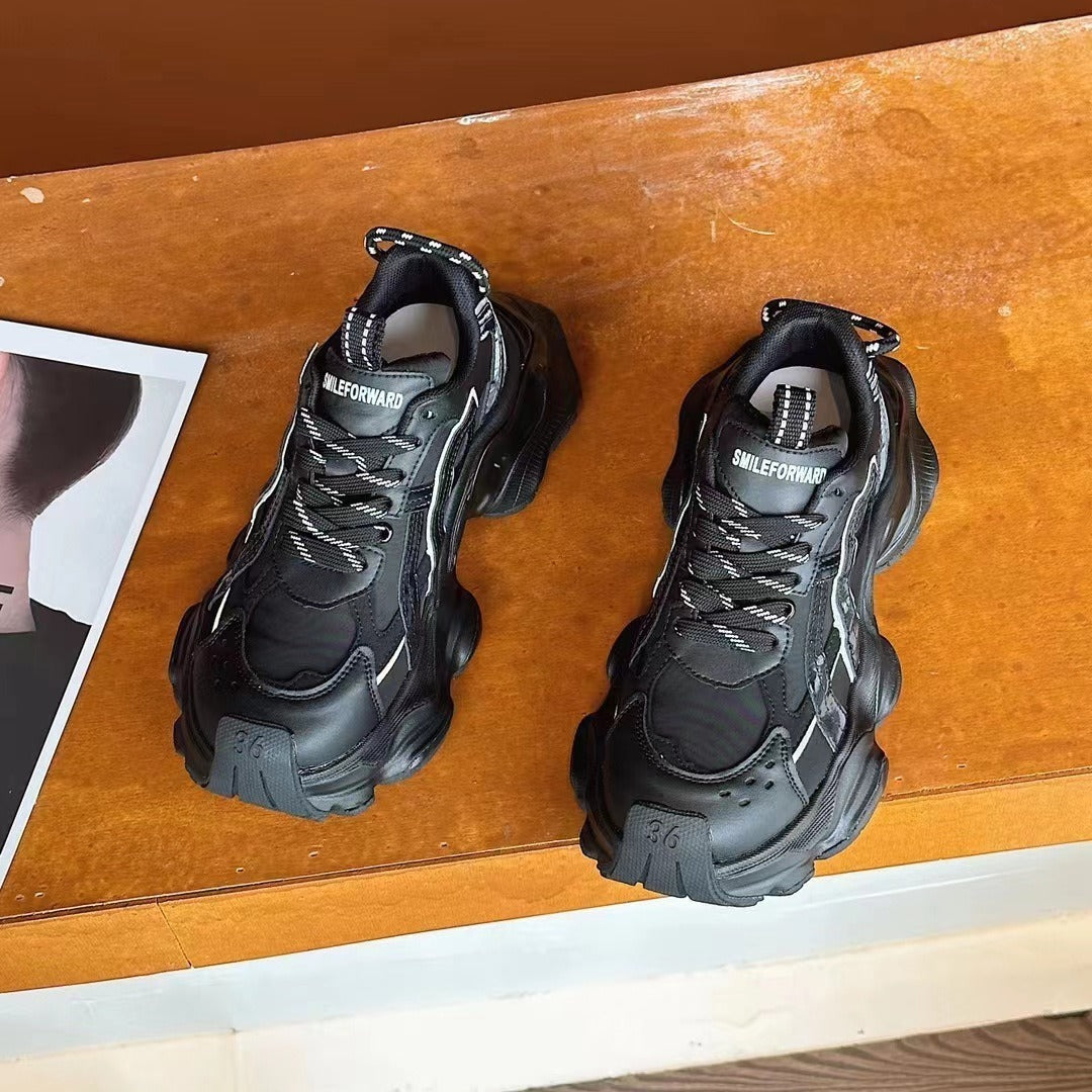 Genuine Leather Platform Casual Faded-effect Clunky...