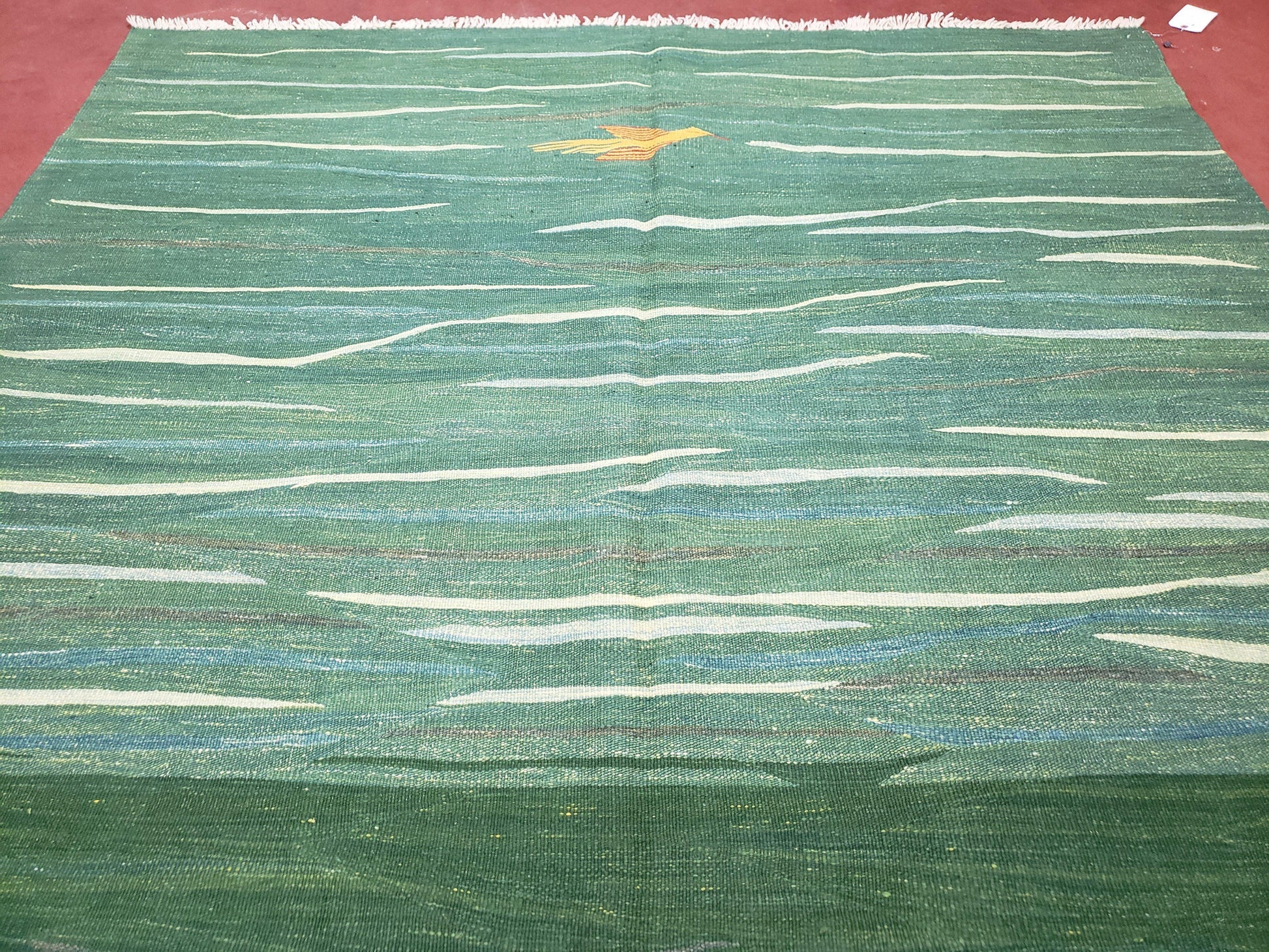 Green Turkish Kilim Rug, 6x9 -...