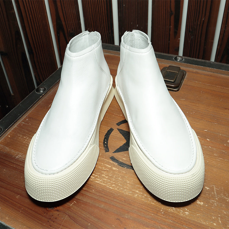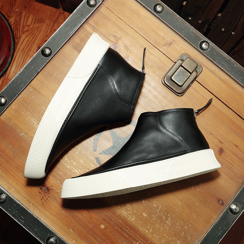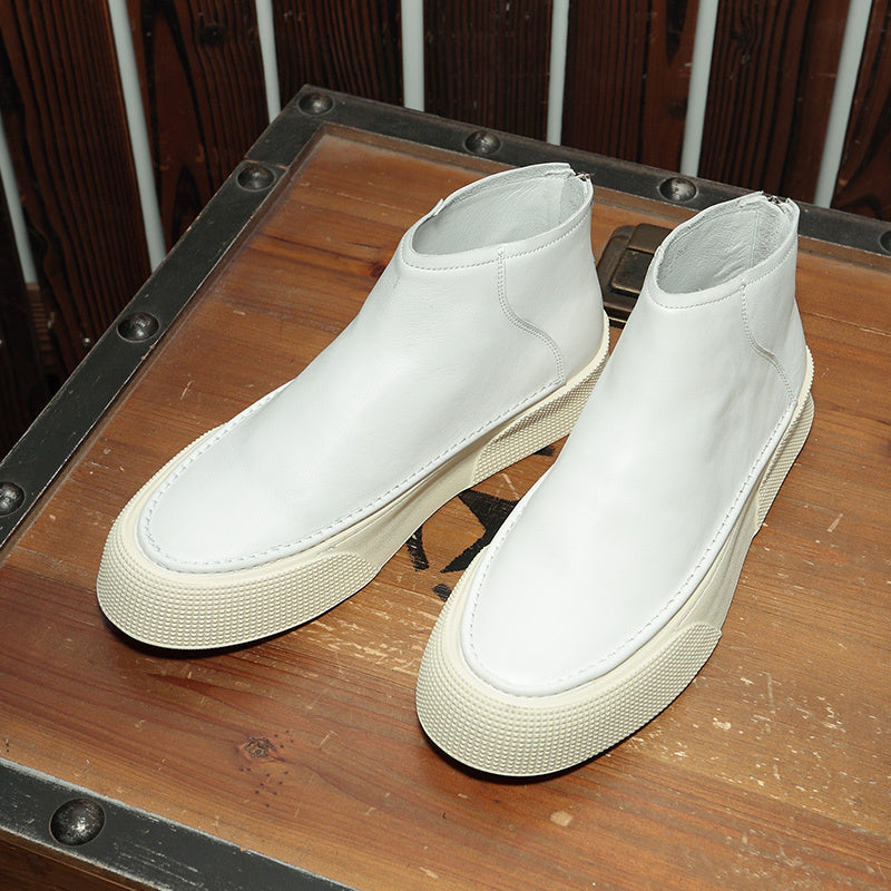 Men Leather High Top Sneakers Simple...