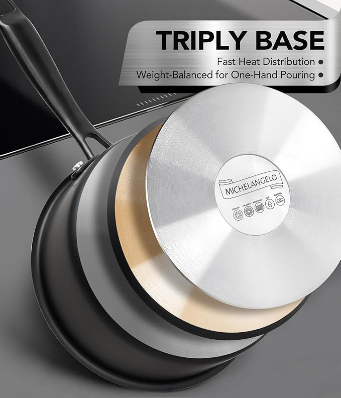 MICHELANGELO Stainless Steel Saucepan Set, Triply-Base...