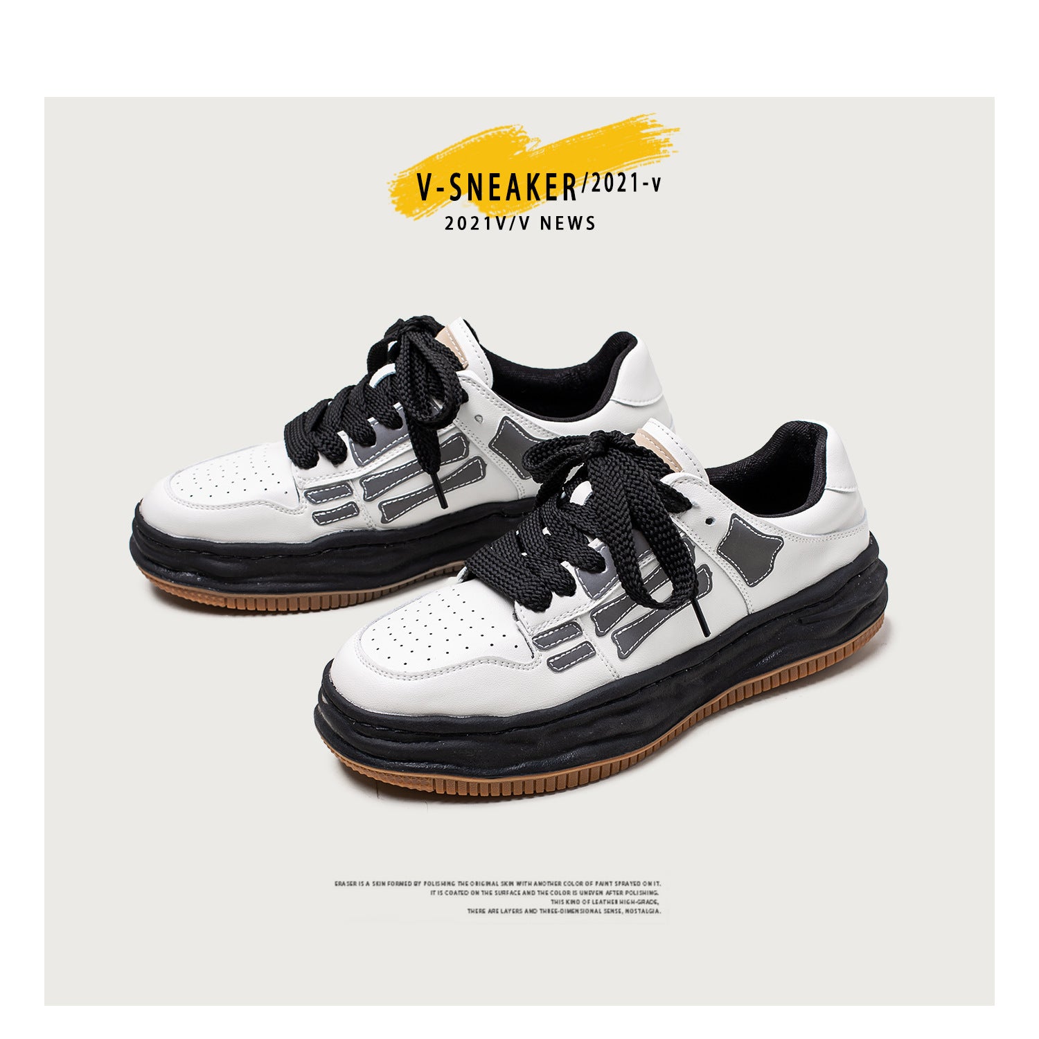 Reflective Bone Retro Platform Sneakers Men