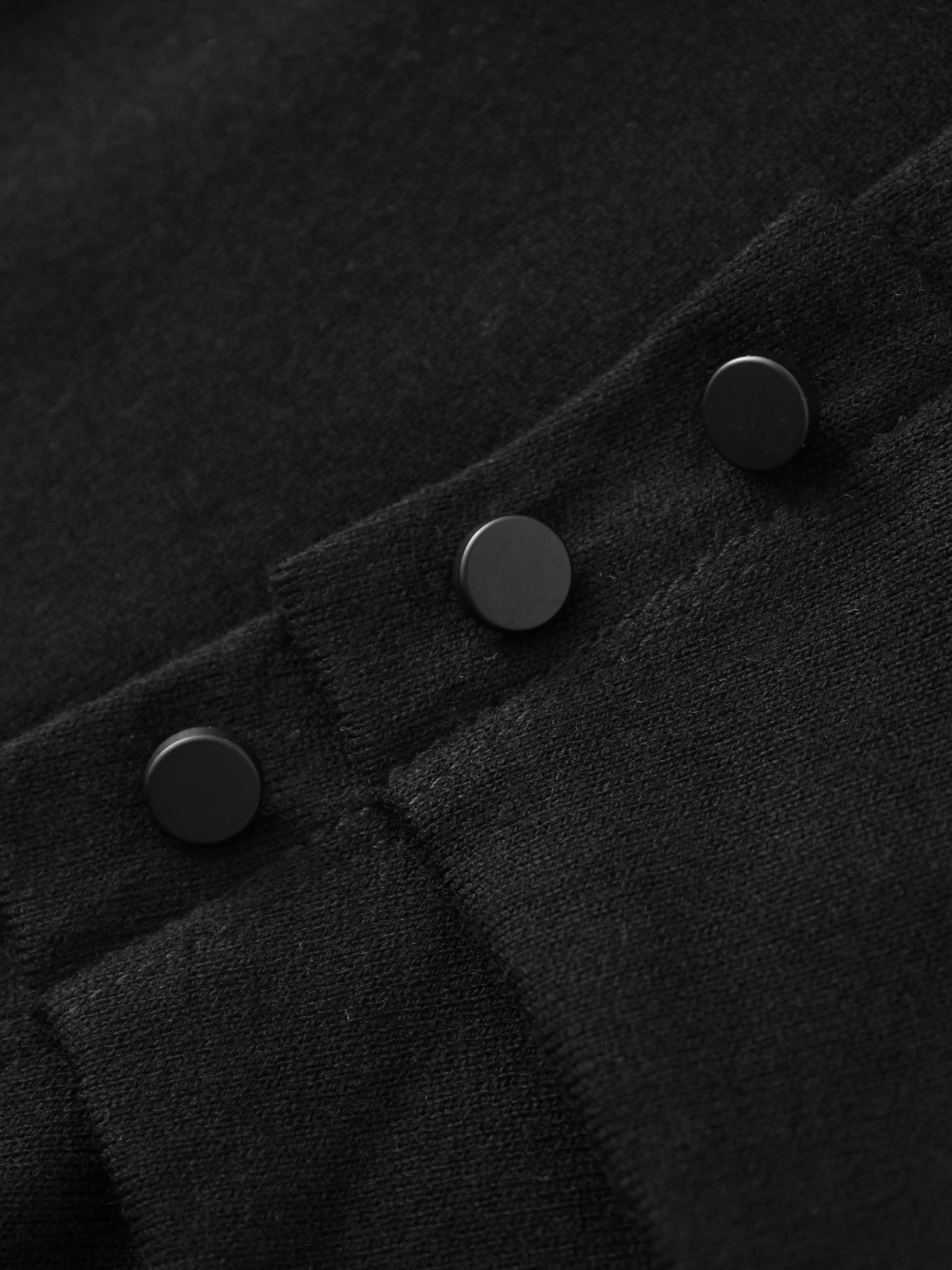 Side Shirred Button Down Knit-Black