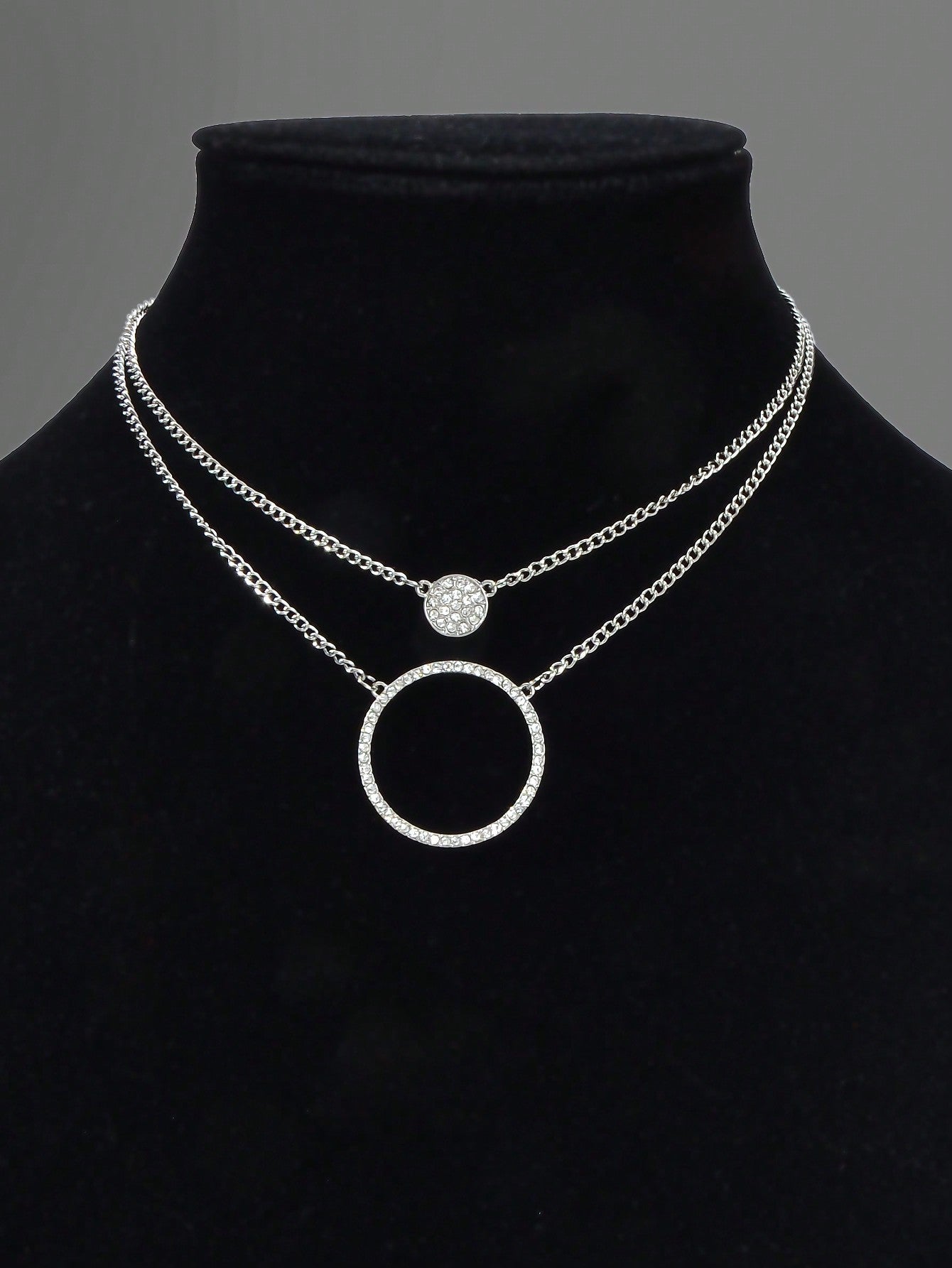Silver Double-Layered Large Circle Pendant Necklace...
