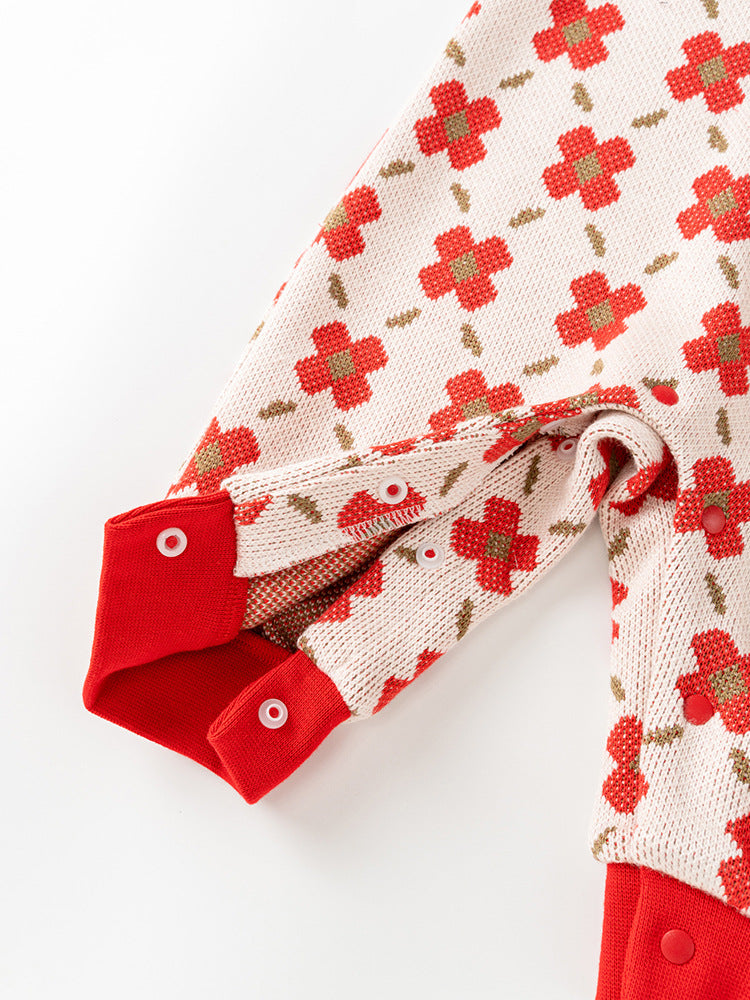 Spring Baby Girl Red Floral Knitted...