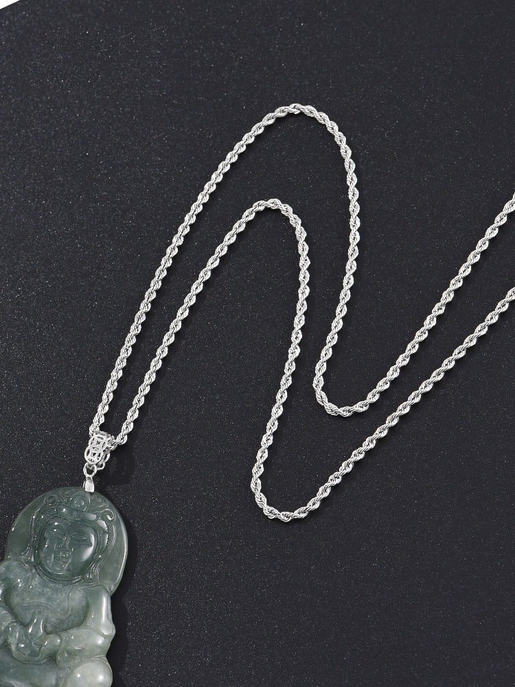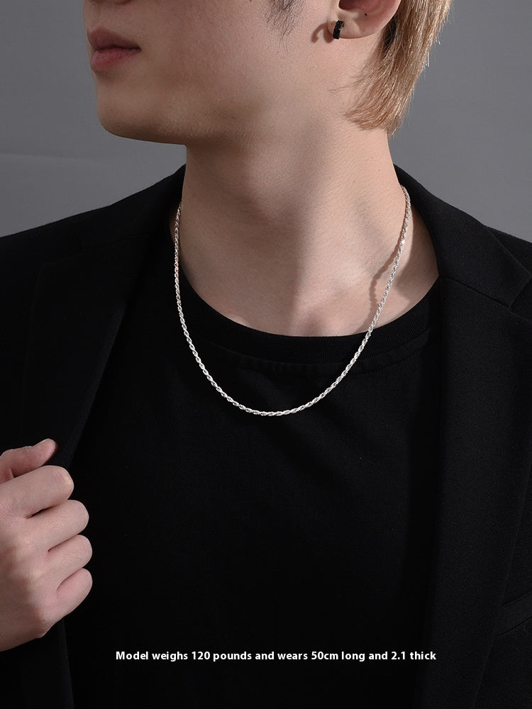 Sterling Silver Necklace Men's Hemp Rope...